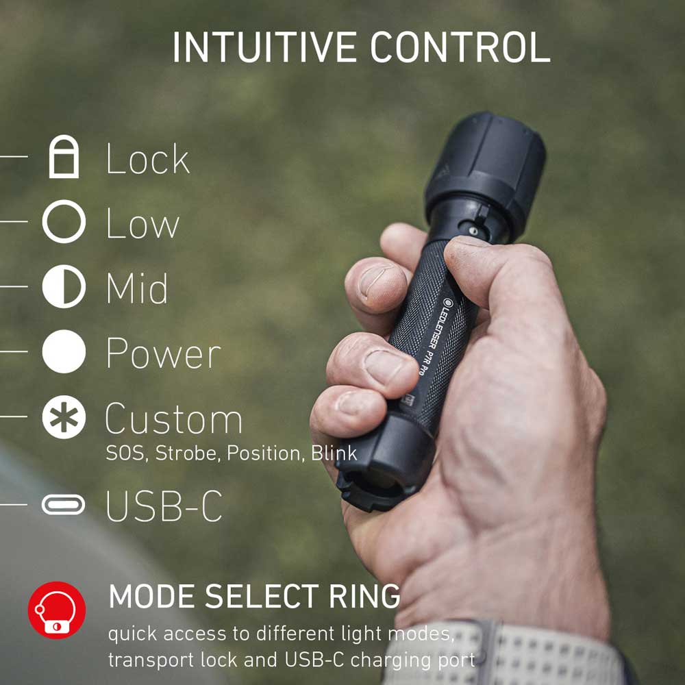 The patented Advanced Focus System allows quick changes from circular low beam (flood) to more sharply-focussed long distance beam (spot). An improved grip combined with a larger, more responsive switch allow faster, more accurate handling - ideal for those cold nights where gloves are required! The Mode Select Ring offers quick selection of lighting mode, without the need for continuous button pressing.